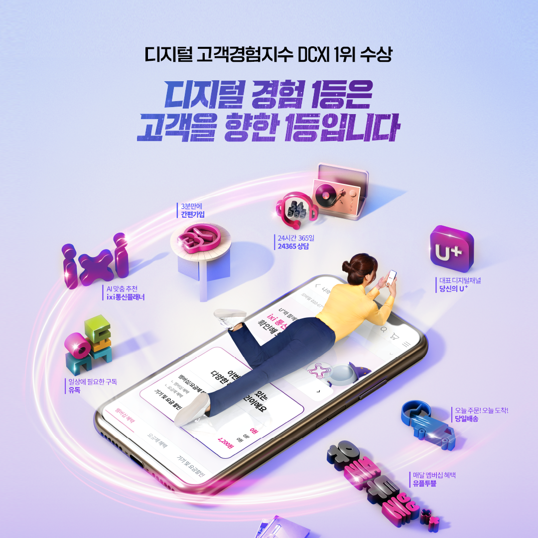 이러한 당신의 U+앱과 유플러스닷컴 공식 웹사이트를 통한 차별화된 고객 경험 창출을 인정받아, 올해 LG유플러스가 DCXI(Digital Consumer eXperience Index) 평가 최고점을 획득하며 이동통신 분야에서 단독 1위로 선정되었죠.