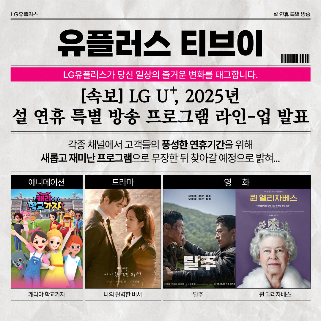 알차게 준비한 각 채널의 특집 방송! 놓치지 말고 실시간으로 편하고 쉽게 U+tv와 함께하세요!